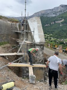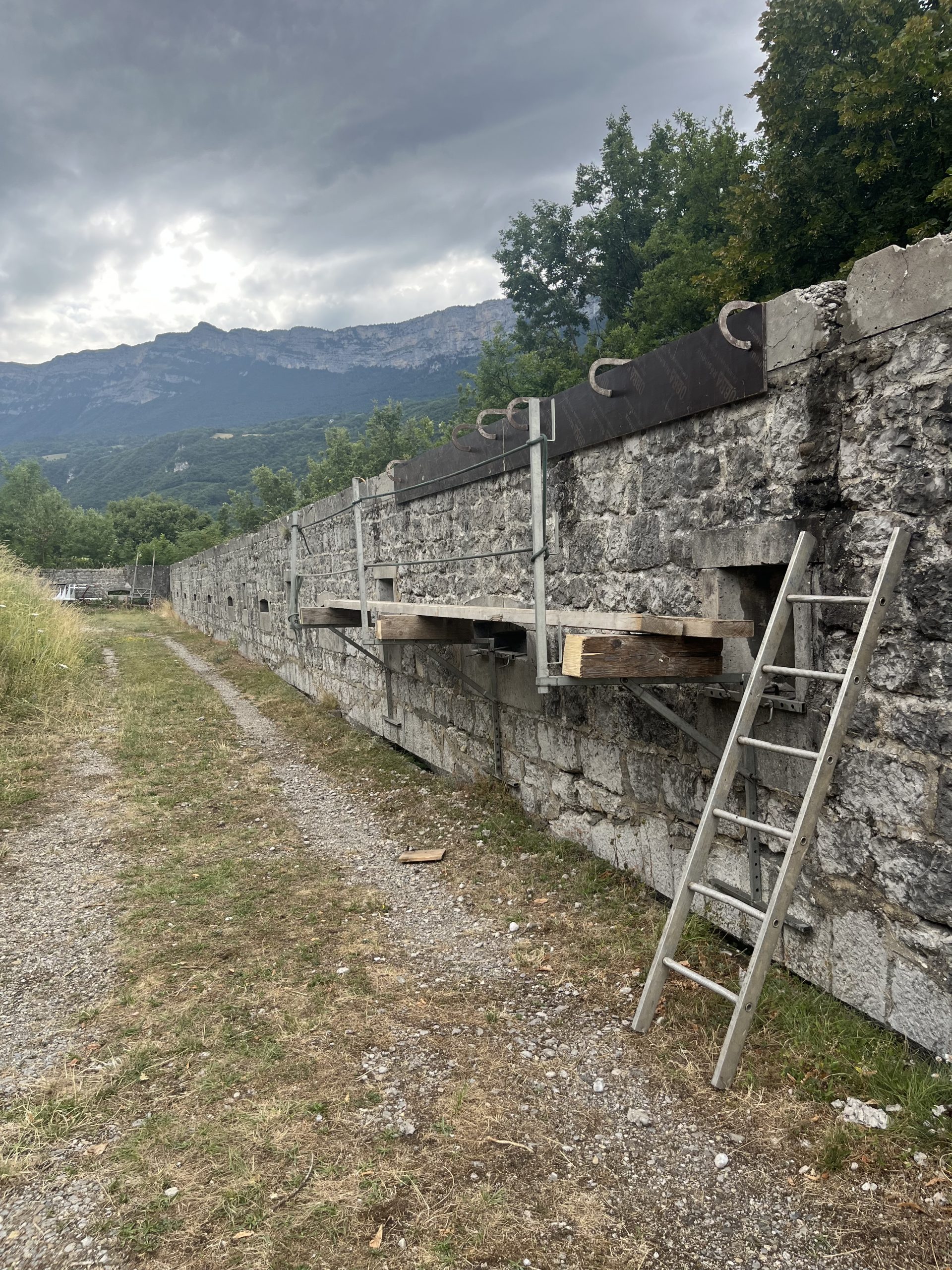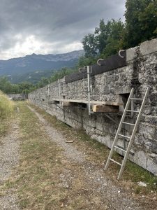 Le projet est la réfection des pierres moulées en ciment au dessus des murs de l’enceinte