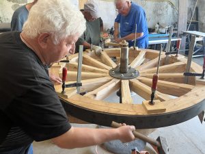 Les équipes de restauration ont repris la fabrication des roues en bois, d’un diamètre impressionnant de 155 cm.