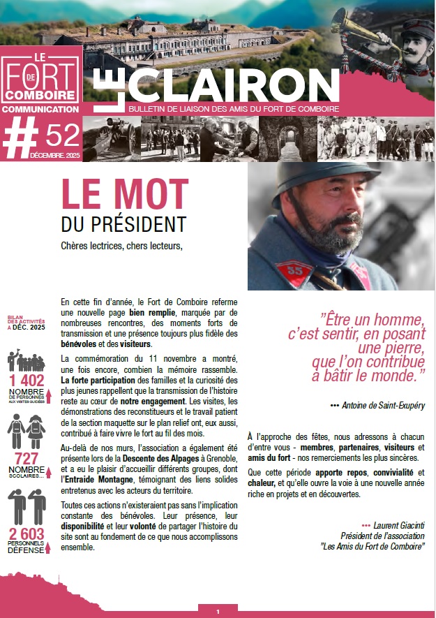 Découvrez sans plus attendre le dernier numéro de « Le Clairon« , le bulletin de l’association des Amis du Fort de Comboire.